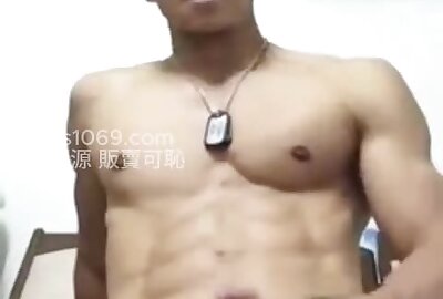 Horny soldier James Drake masturbates solo in front of the camera