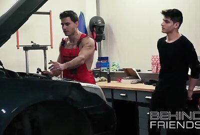 Horny masseur worships Damians muscles and cock with oily massage