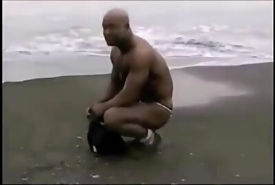 Asian Bodybuilder At The Beach In Various States Of Nakedness