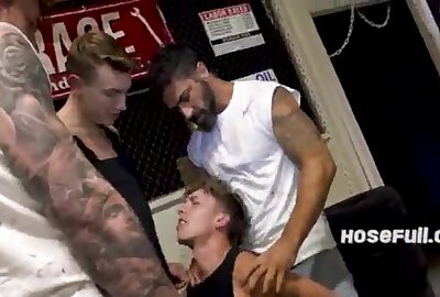 Bareback threesome Carter Colins Greyson Myles and Oliver Mark