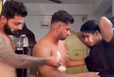 three guys mutual blowjob on cam