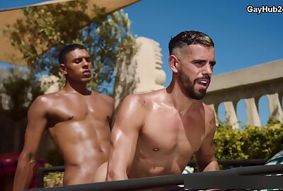 Watch him take all that juicy cock in his raw hole