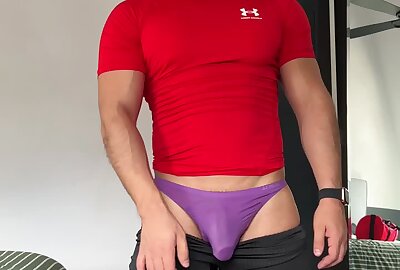 159.9 Football player shows his ass in lilac thong