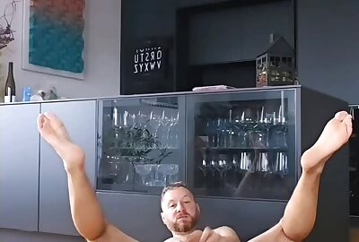 Handsome Bearded Guy With A Huge Cock Fucks A Dildo & Cums