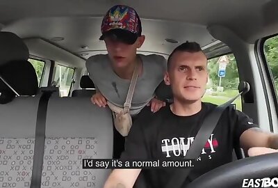 Buddies Ryan Bones and Cam Crawford jerk off in the back seat of the car together
