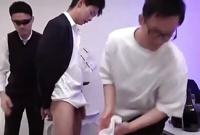 Yoshi Kawasaki howls in uninhibited ecstasy while stroking his cock in a lubed cylinder