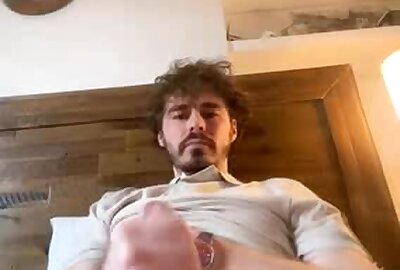 Handsome amateur jerking off his thick cock in kinky solo with satisfaction