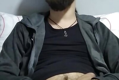 Horny Spanish Guy Jerking-off and Cumming on His Belly