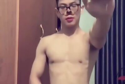 slim and tall glasses guy with tattoos jerks off big heavy cock