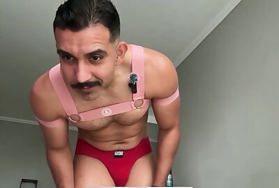 Home alone latino boy playing with his oily ass