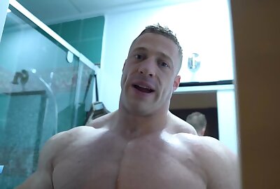Tim Budesheim Sexy Posing, Showering, and Applying Tanner
