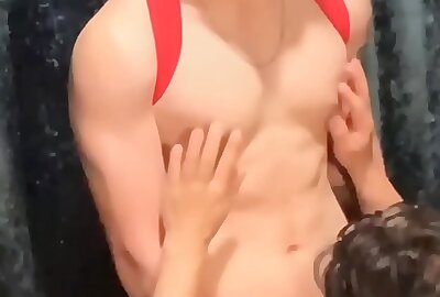 Muscle Model Gets Worshipped But Can't Hide His Boner