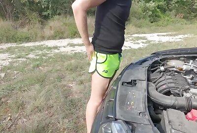 Twink With Car Troubles Jacking Off In Front Of His Car's Open Hood