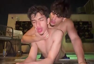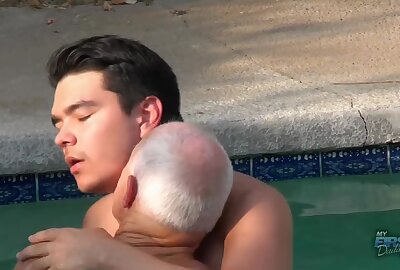 Grandpa sucked by pool and fucked on bed
