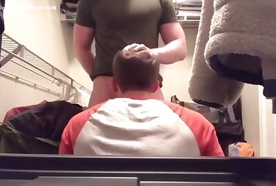 Straight Guy Seduced to Blowjob in Closet