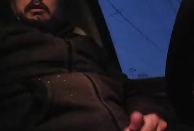 handsome latino jerks off in the car