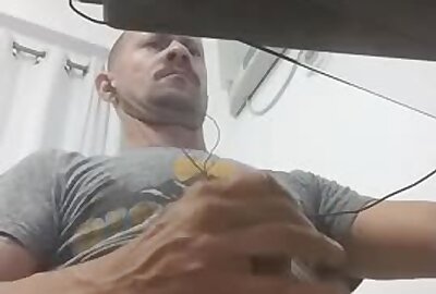 slim guy wanks on webcam