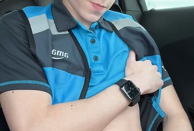 Delivery Driver Strengthens His Muscles During Work Break Time