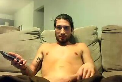 pretty boy with tattoos jerks off his big cock
