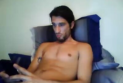 Tattooed homo Beckett arousing viewers with his solo wanking sesh