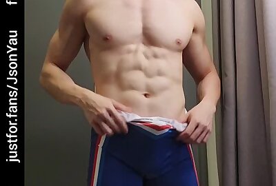 Korean Beefy dude Strokes His Uncut Cock Until He Cums