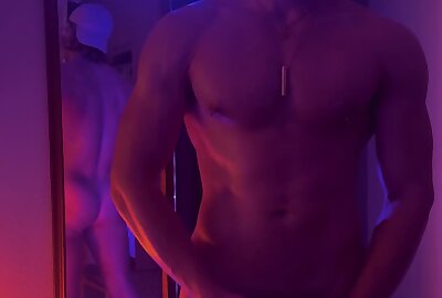 athletic european guy with tattooos jerks off his big dick until he cums a lots