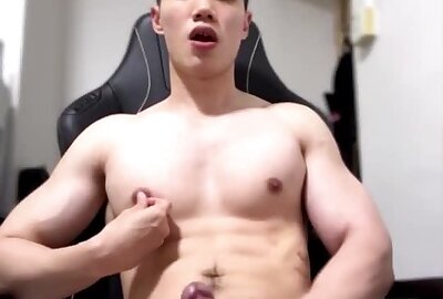 Masturbation of large penis on carrot colored background - GuitarJob - Guitar Masturbation