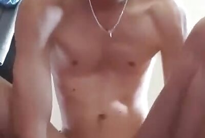 Young amateur jerks off his hairy cock and cums with intense satisfaction