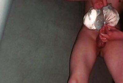 Park Jerking with Tied Balls, Put on Condom and Filled It with Cum Close