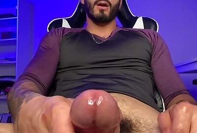Hot Beefy Latino Guy Strokes His Hairy Uncut Cock