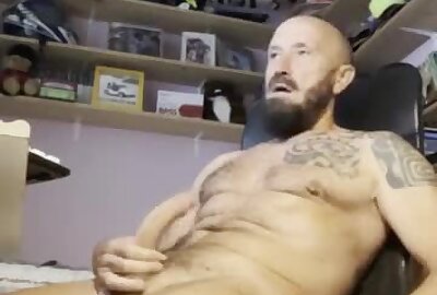 sexy daddy with Piercings and tattoos jerks off his big heavy cock on webcam