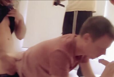 Skinny butt bandit spitroasted in twink threesome