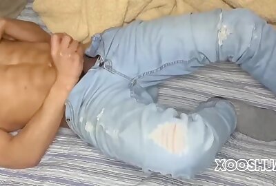 A virgin has a hard time taking a big cock because he's 18 years old and now he's covered in cum